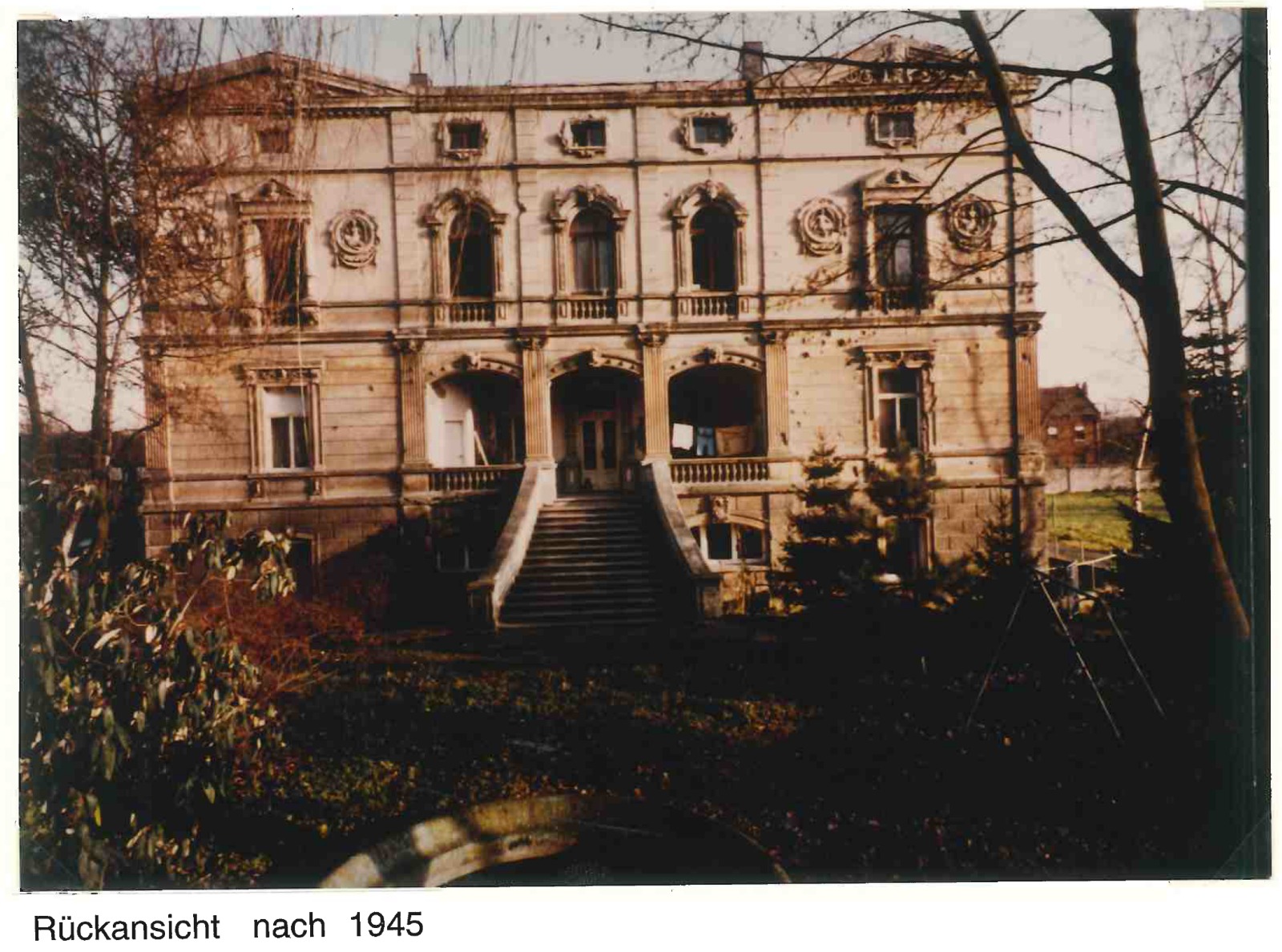Unmittelbar nach Kriegsende wurde die Villa Buth wieder als Wohnraum genutzt. Um möglichst vielen Menschen Wohnraum zu bieten, wurden zusätzliche Wände eingezogen. Diese völlig verzehrten Raumeindrücke zeugen heute noch von der Not der Nachkriegsjahre.