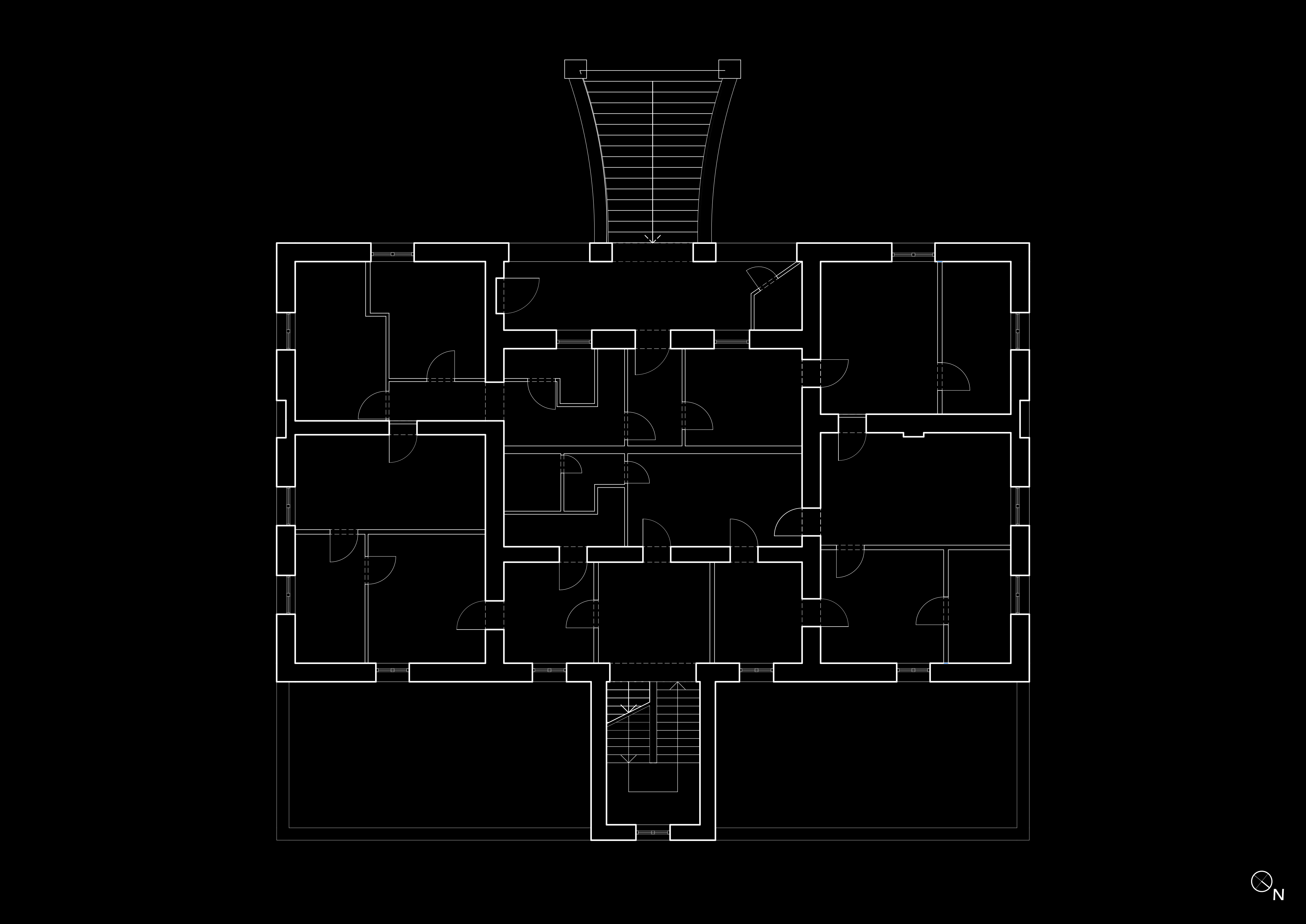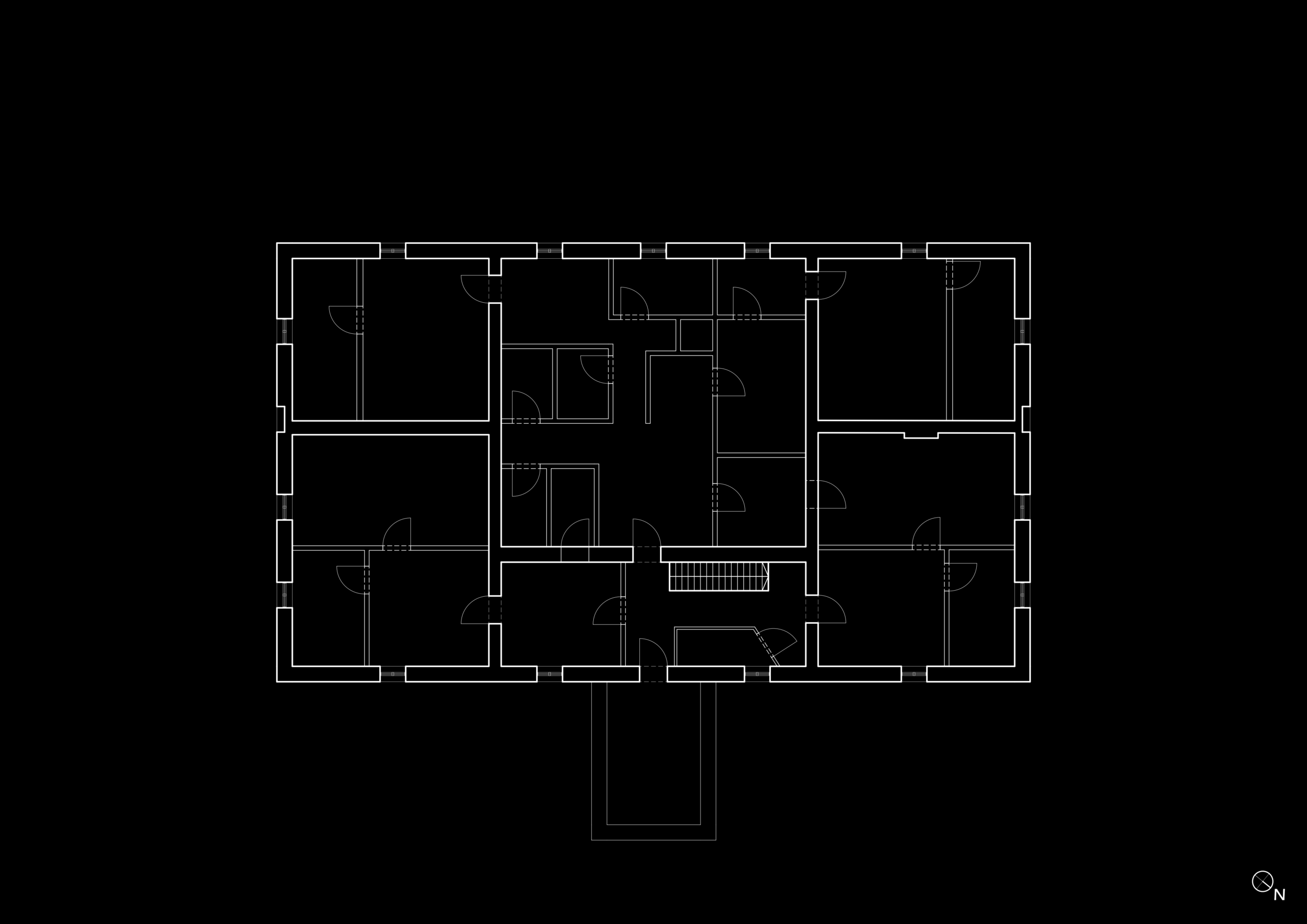 Durch die Umnutzung zu einem dicht bewohnten Mehrfamilienhaus entstanden auch völlig neue Erschließungswege. Die Freitreppe – vermutlich der ursprüngliche Haupteingang – wurde noch von zwei Parteien zur Erschließung genutzt, die restlichen zehn Wohneinheiten sind über den straßenseitigen Eingang der Tiefparterre zu erreichen.